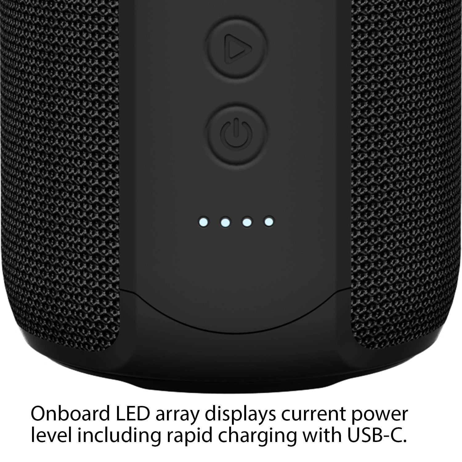 Powerful Bluetooth 5 signal. With over 8 hours of play time and the most advanced Bluetooth 5 chipset available today, the Sonictrek Go XL is ready to take on a full day of use. Charge in under 30 minutes with included USB-C rapid charging port.